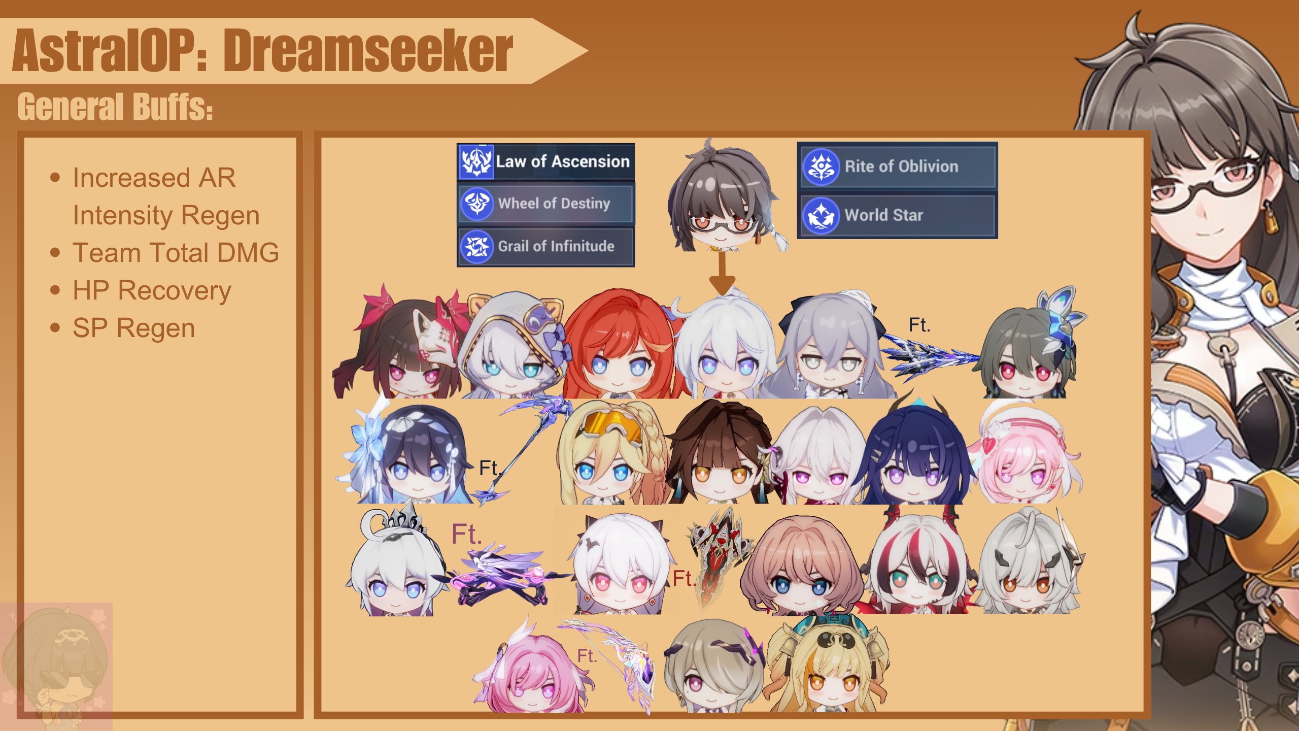 Dreamseeker is your default AstralOP, given at level 30, with rankups gradually obtained when you clear P2 Story chapters. She acts as general AstralOP that is sufficient for most players, with mild and buffs for Astral Ring system valkyries.