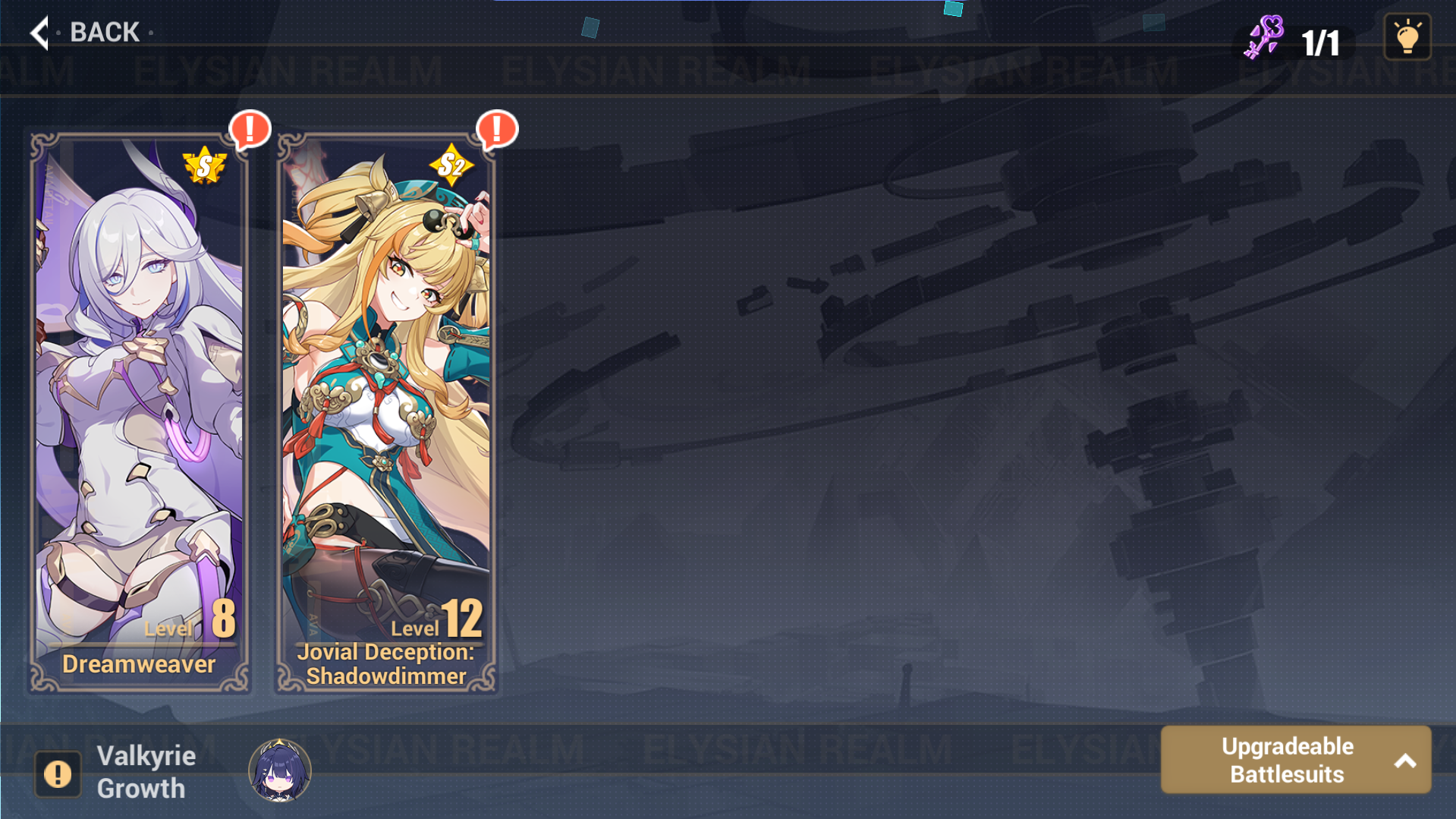 - Elysian Realm when you first obtain certain new valkyries, clear Shallow Sequence, and level them up to level 15 (in ER)