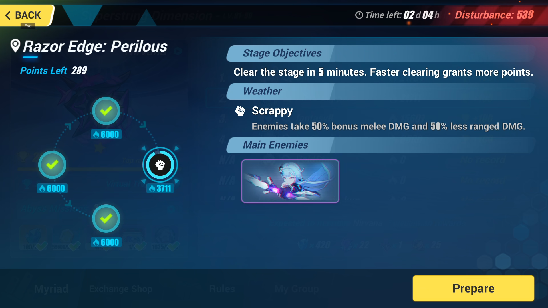 Basically it’s a bunch of stages you have to clear (4 stages for Exalted - Superstring Dimension). The faster you clear the boss stage, the higher your score. For the other 3 stages, just a clear is sufficient, doesn’t matter how fast or slow you are. Clear = 6000 score. Only the boss stage matters how fast you clear.