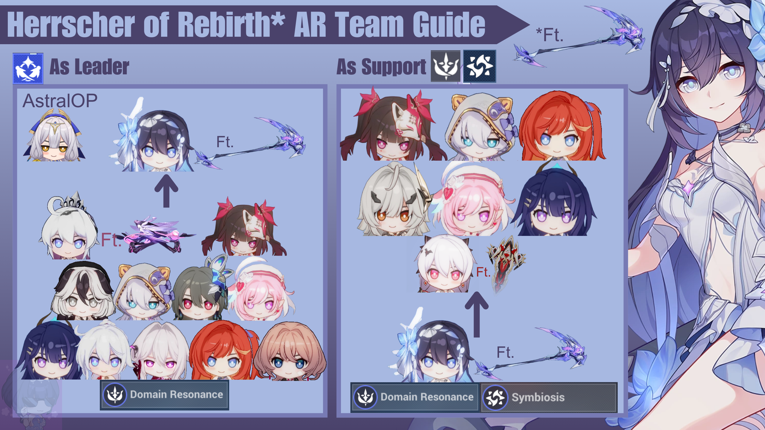 As support in both forms, Herrscher of Rebirth (HoRb) is quite quick and capable of applying buffs. She is also able to consume rather quickly on both modes.