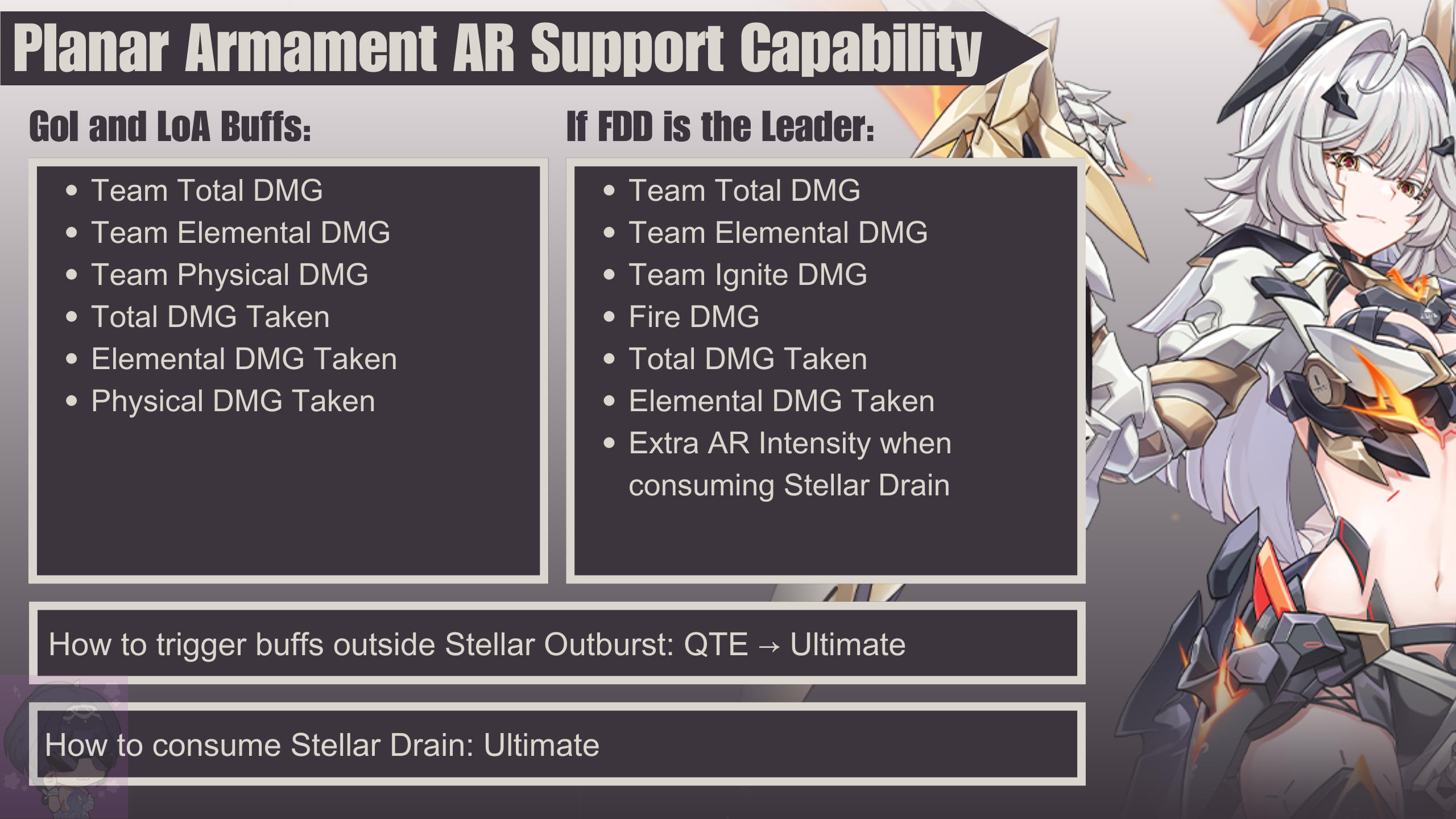 Planar Armament: Warped Spacetime (PAWS) doesn’t do well as a support. As support, she is mainly on Coralie FDD team. Other than that, she has very niched uses (like Ely HLE’s Symphonic/multi-elemental team). She applies buffs and consume fast.